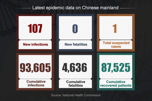 - Chinese mainland reports 107 new confirmed COVID-19 cases, with 75 locally transmitted.