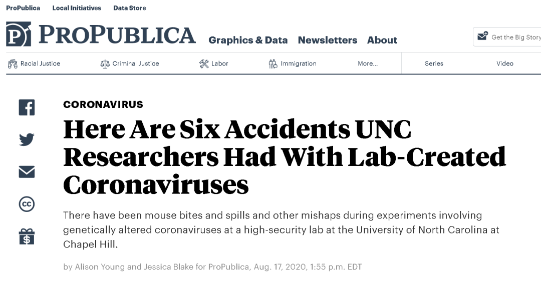 “UNC declined to answer questions about the incidents and to disclose key details about them to the public, including the names of viruses involved, the nature of the modifications made to them and what risks were posed to the public, contrary to NIH guidelines,” ProPublica wrote in their article.