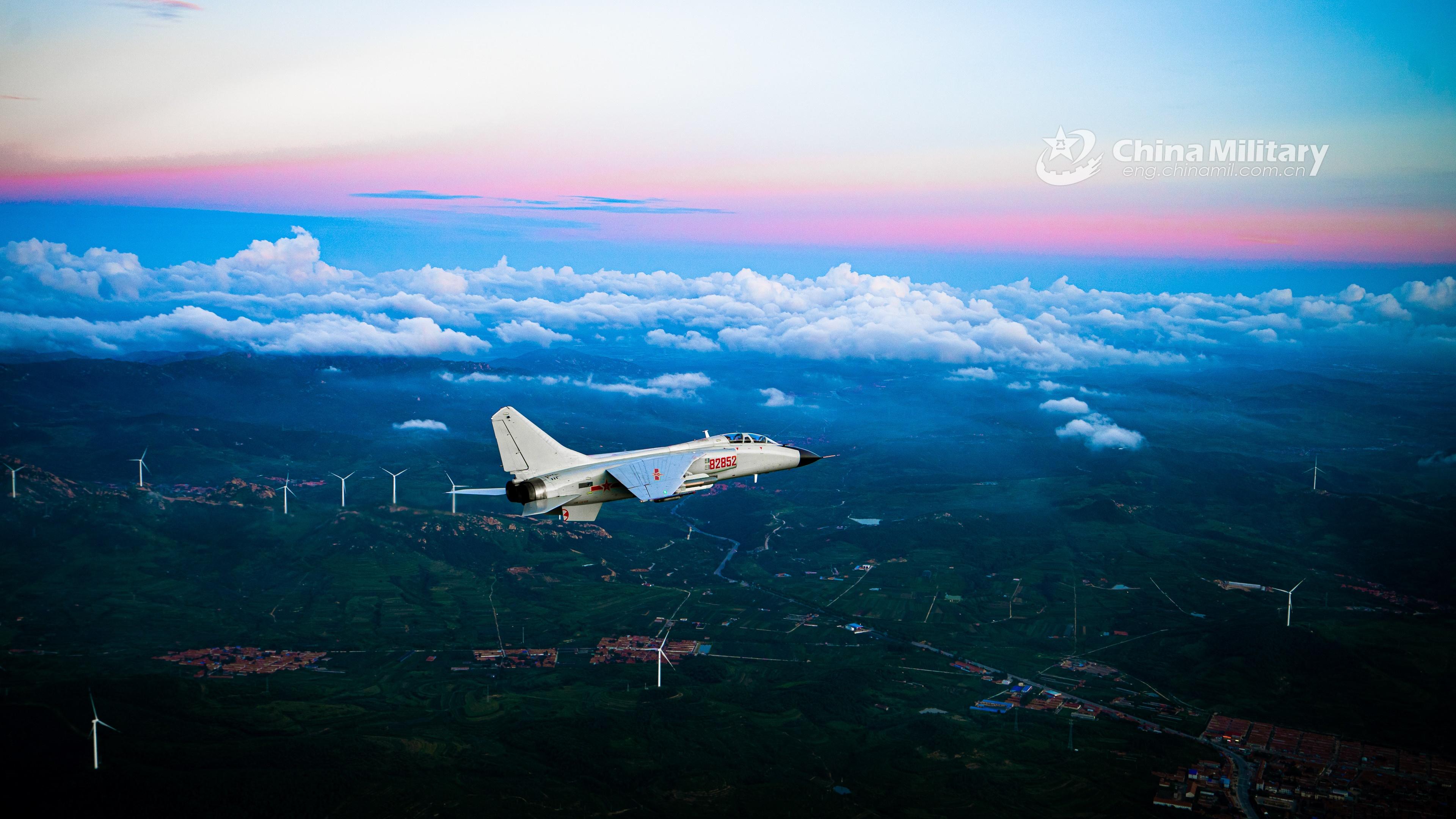 A fighter bomber attached to a naval aviation brigade under the PLA Northern Theater Command pierces into the stratosphere through clouds and mist during a round-the-clock flight training exercise in late July. (eng.chinamil.com.cn/Photo by Li Mingxi and Liu Xuhong)