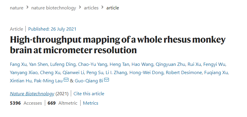 The researchers from the USTC and SIAT developed a high-throughput and high-resolution three-dimensional fluorescence imaging method called VISoR that is capable of completing whole-brain imaging of a rhesus monkey within 100 hours.