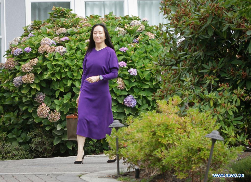 China's Huawei Chief Financial Officer Meng Wanzhou leaves her residence to the court in Vancouver, Canada, Aug. 18, 2021. Canada's British Columbia Supreme Court concluded the hearings of Meng Wanzhou's extradition case Wednesday afternoon, with a final decision expected to come later in October. (Photo by Liang Sen/Xinhua)