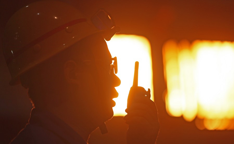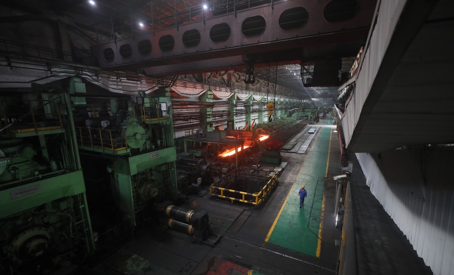A worker works at a workshop of Ansteel in Anshan City, northeast China's Liaoning Province, Aug. 19, 2021. (Xinhua/Yang Qing)