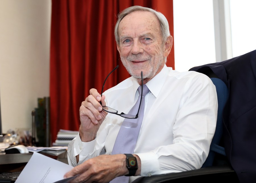 Richard Cullen, a visiting professor at the University of Hong Kong, speaks during an interview with Xinhua in Hong Kong, south China, Aug. 12, 2021. (Xinhua/Wu Xiaochu)