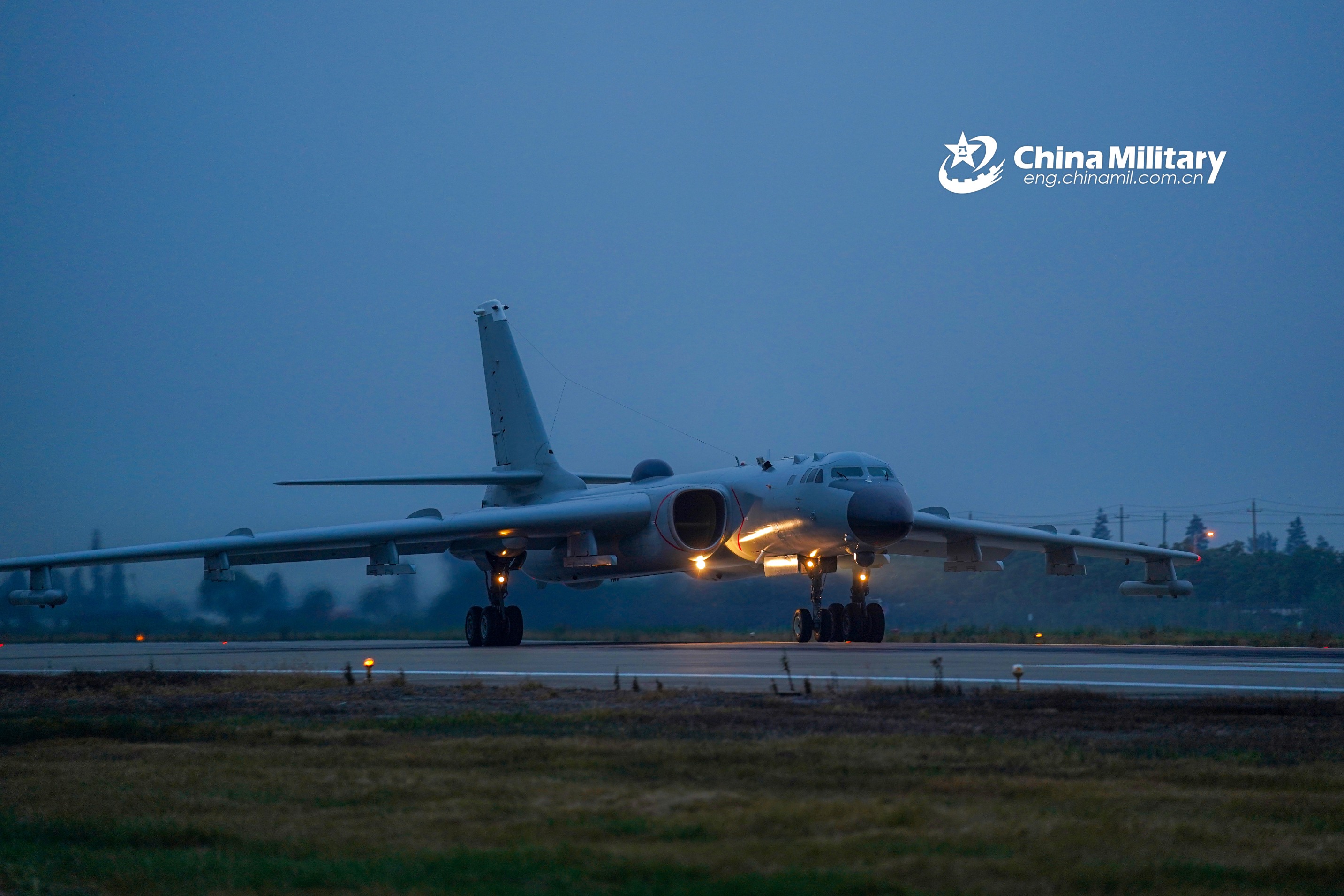 A bomber attached to an aviation regiment of the PLA Navy takes off for a realistic round-the-clock flight training exercise on August 9, 2021. The training contains multiple subjects such as shock tactics against ground and sea targets, flight-refueling operations and so on. (eng.chinamil.com.cn/Photo by Yang Ling)