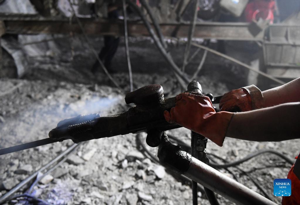 A worker prepares the drill-through of a railway tunnel in Du'an Yao Autonomous County, south China's Guangxi Zhuang Autonomous Region. Sept. 1, 2021. A 15.2-km tunnel on the high-speed railway linking Nanning of south China's Guangxi Zhuang Autonomous Region and Guiyang of southwest China's Guizhou Province was drilled through on Thursday. (Xinhua/Lu Boan)