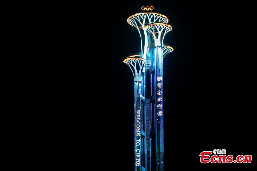 The Olympic Tower in Beijing lights up to celebrate opening of CIFTIS (3)