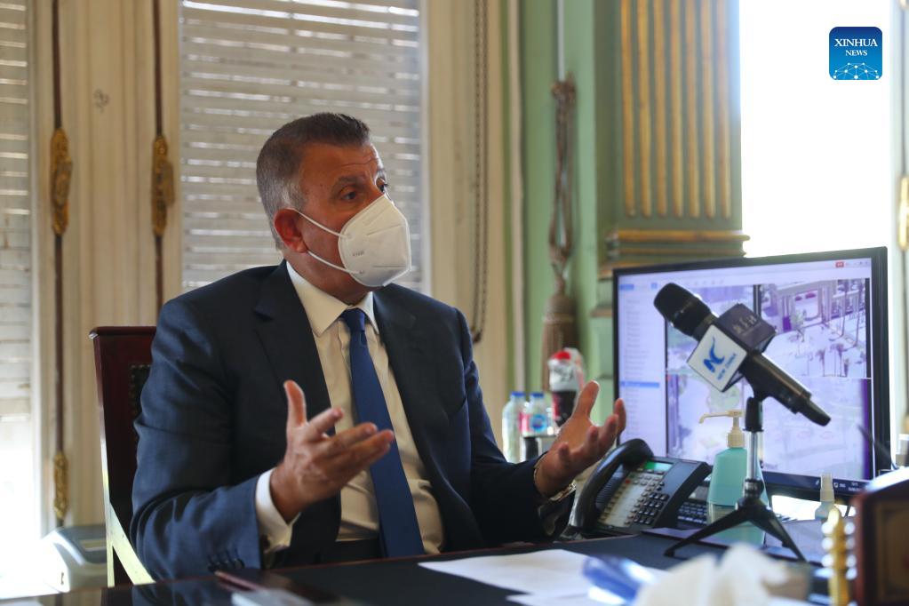 Ain Shams University President Mahmoud al-Metini receives an interview with Xinhua at the university in Cairo, Egypt, Aug. 16, 2021. (Xinhua/Sui Xiankai)