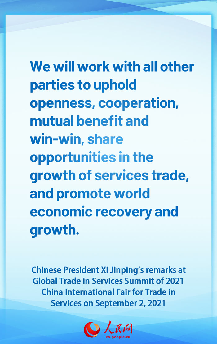 Highlights of Chinese President Xi Jinping's remarks at Global Trade in Services Summit of 2021 China International Fair for Trade in Services