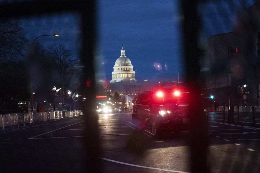 The U.S. Capitol building is seen through a barrier fence in Washington, D.C., the United States, Jan. 17, 2021. (Xinhua/Liu Jie)