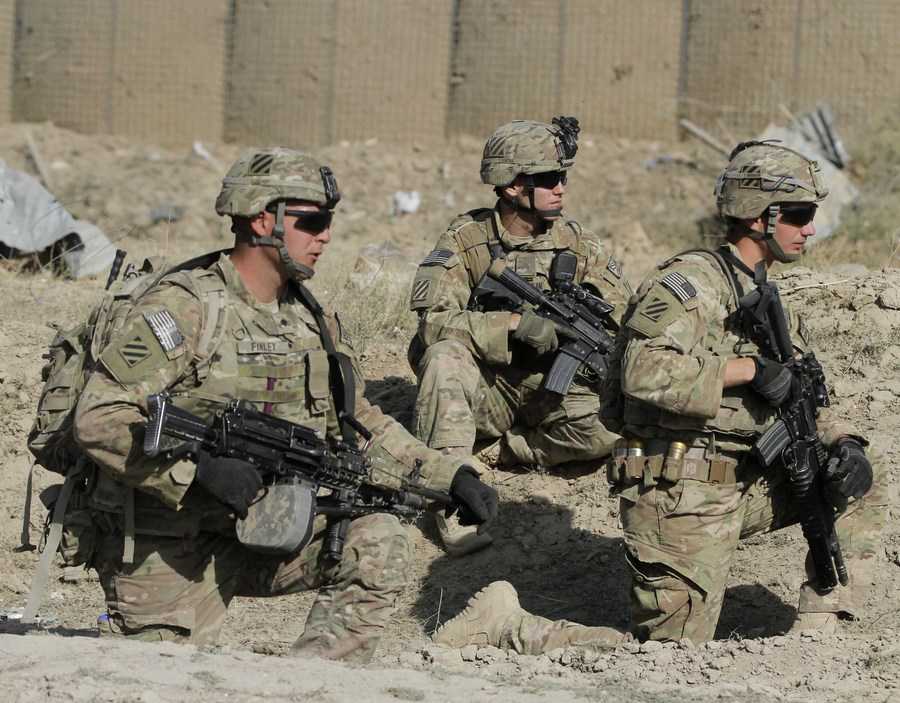 File photo shows American soldiers patrolling at attack scene in Maidan Shahr, capital city of Wardak province, Afghanistan on Sept 8, 2013. (Xinhua)