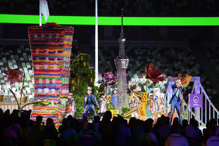 Photo taken on Sept. 5, 2021 shows the performance during the closing ceremony of the Tokyo 2020 Paralympic Games at the Olympic Stadium in Tokyo, Japan. (Xinhua/Cheong Kam Ka)