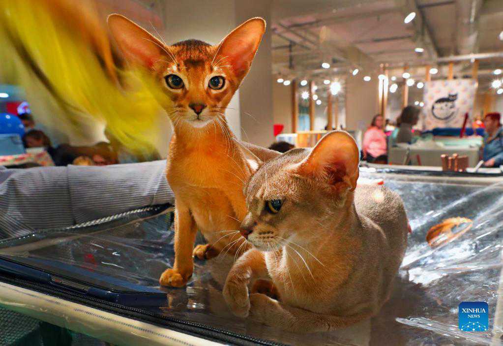 Photo taken on Sept. 4, 2021 shows cats during a cat show held in Minsk, Belarus. (Photo by Henadz Zhinkov/Xinhua)