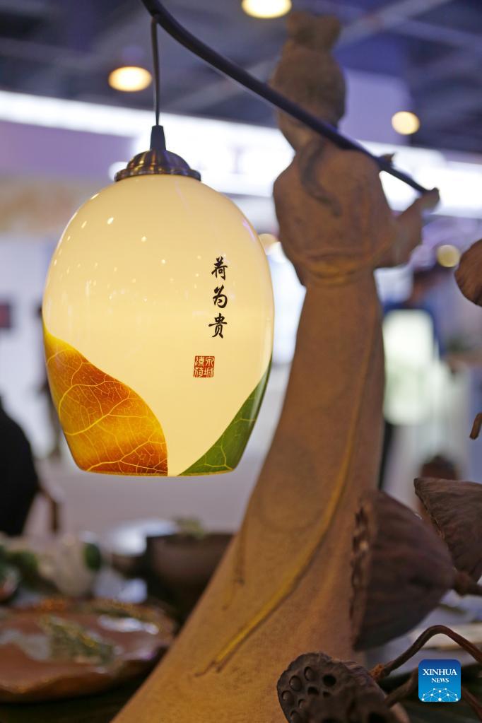 Photo taken on Sept. 6, 2021 shows a Chinese-style lantern during the China International Fair for Trade in Services (CIFTIS) in Beijng, capital of China. (Xinhua/Ding Hongfa)
