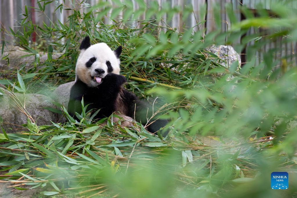 Photo taken on Sept. 7, 2021 shows a giant panda in Zoo Aquarium in Madrid, Spain. Two giant panda cubs born in the Madrid Zoo Aquarium on Monday were doing fine and in good health, according to the zoo authorities on Tuesday. It is still too early to confirm the sexes of the baby pandas, said the zoo, expecting for help from two specialists from China's Chengdu Research Base of Giant Panda Breeding. (Xinhua/Meng Dingbo)