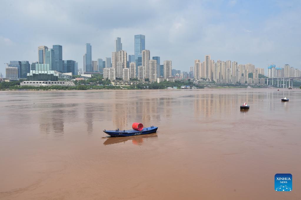 Photo taken on Sept. 7, 2021 shows a view of a dock in southwest China's Chongqing Municipality. The emergency response for flood control was upgraded from level III to II on Tuesday, according to Chongqing's flood control and drought relief headquarters. (Xinhua/Wang Quanchao)