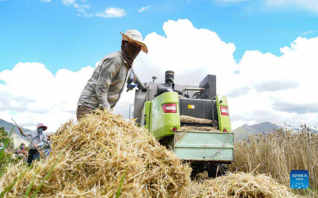 Farmers harvest highland barley in Lhasa, Tibet