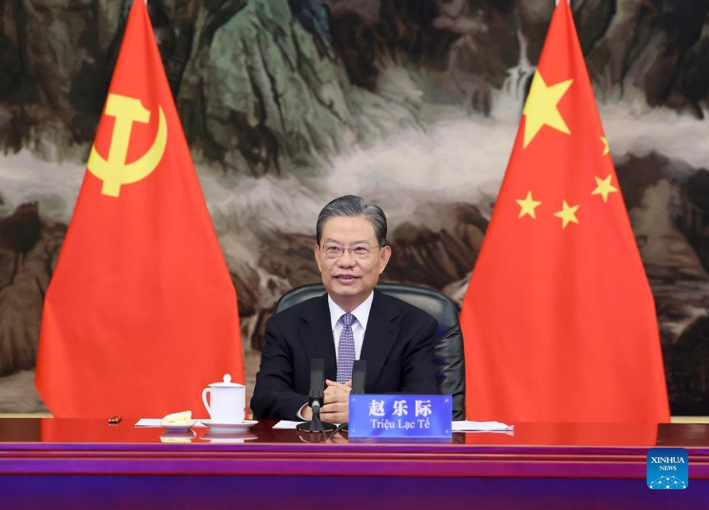 BEIJING, Sept. 7 (Xinhua) -- China's top anti-graft official Zhao Leji met with Tran Cam Tu, a member of the Politburo of the Communist Party of Vietnam (CPV) Central Committee, and head of the Committee's Inspection Commission, in Beijing via video link Tuesday.