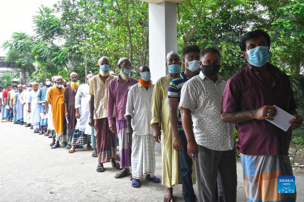 People queue up to receive Chinese COVID-19 vaccines outside a vaccination center in Chandpur, Bangladesh, Sept. 7, 2021. (Xinhua)