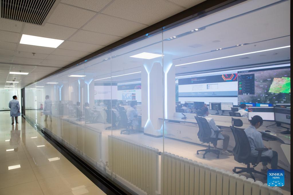 Researchers work at the International Research Center of Big Data for Sustainable Development Goals (SDGs) in Beijing, capital of China, Sept. 8, 2021. The International Research Center of Big Data for SDGs was inaugurated in Beijing on Sept. 6 to support the UN 2030 Agenda for Sustainable Development. (Xinhua/Jin Liwang)