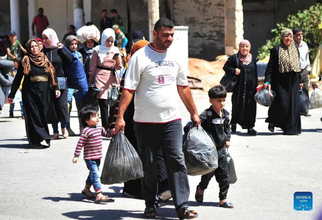 People return to their homes in Syria's southern province of Daraa, on Sept. 9, 2021. Thousands of people started returning to their homes in Daraa on Thursday following the army's entry to the formerly rebel-held areas, state news agency SANA reported. (Photo by Ammar Safarjalani/Xinhua)