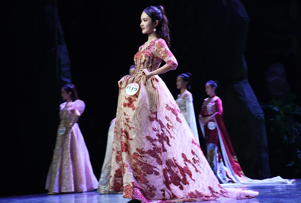 Contestants showcase gowns at the Longteng Supermodel Contest Shandong competition area in Qingdao, east China's Shandong Province, Sept. 11, 2021. (Xinhua/Li Ziheng)