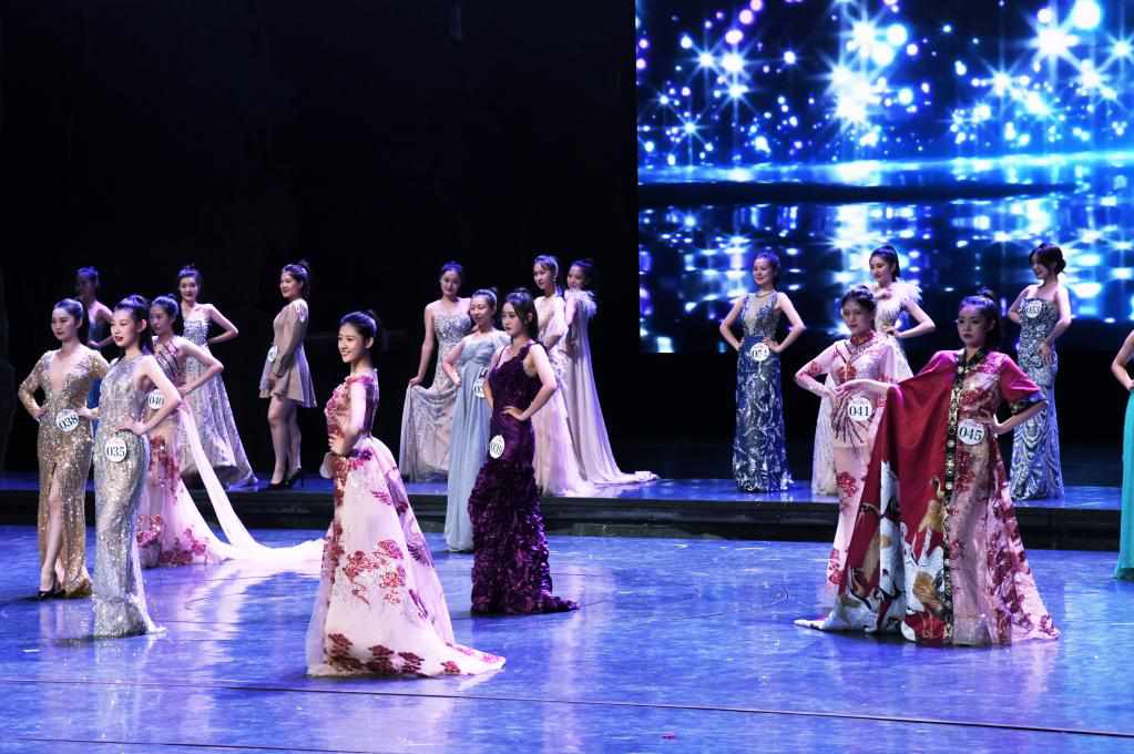 Contestants showcase gowns at the Longteng Supermodel Contest Shandong competition area in Qingdao, east China's Shandong Province, Sept. 11, 2021. (Xinhua/Li Ziheng)