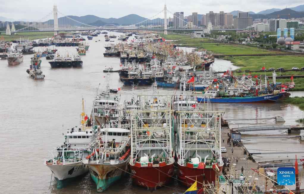 Fishing boats dock at Shenjiamen fishing port in Zhoushan, east China's Zhejiang Province, Sept. 12, 2021. East China's Zhejiang Province and Shanghai have issued alerts for Typhoon Chanthu, which is expected to make landfall on Zhejiang's coastal areas Monday. (Photo by Chen Yongjian/Xinhua)