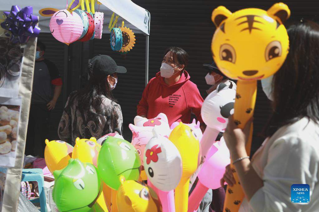 People visit the 31st Mid-Autumn Festival fair in Chinatown in San Francisco, the United States, Sept. 11, 2021. The two-day event is held to hail the Chinese Mid-Autumn Festival, which will fall on Sept. 21 this year. The fair was closed last year because of the COVID-19 pandemic. (Photo by Liu Yilin/Xinhua)