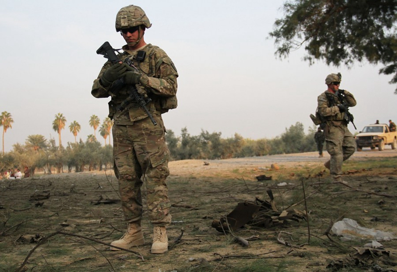 U.S. soldiers stand guard at the site of car bombing in Nangarhar Province, east Afghanistan, Jan. 5, 2015. (Xinhua/Tahir Safi)