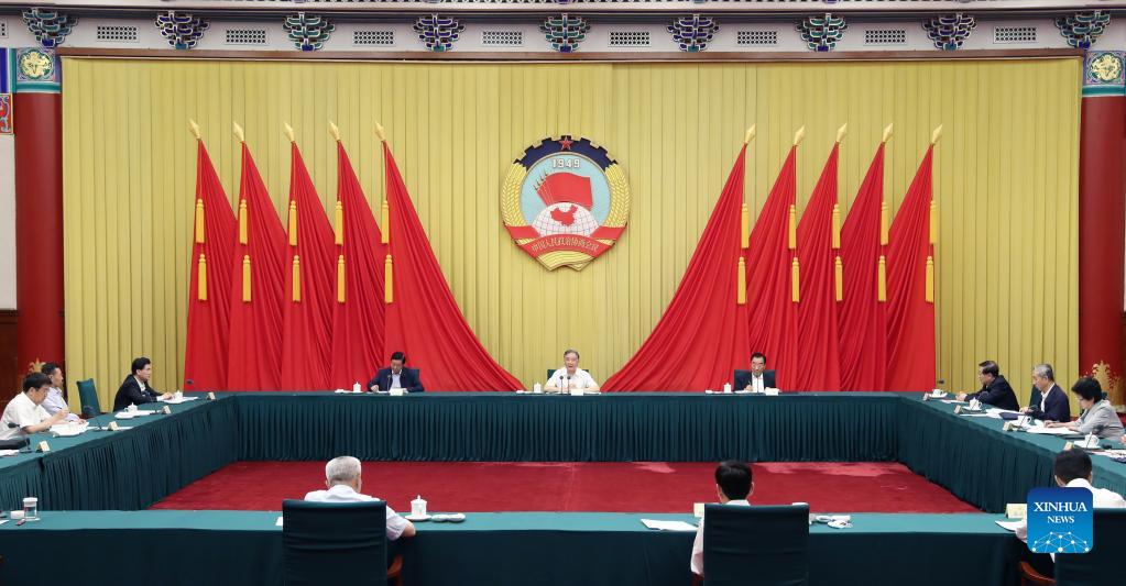Wang Yang, a member of the Standing Committee of the Political Bureau of the Communist Party of China Central Committee and chairman of the National Committee of the Chinese People's Political Consultative Conference (CPPCC), presides over a meeting of the Chairpersons' Council of the CPPCC National Committee in Beijing, capital of China, Sept. 13, 2021. (Xinhua/Yao Dawei)