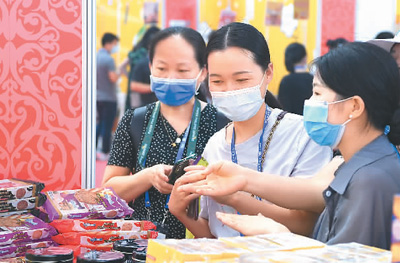 Visitors peruse over Malaysian products at the 18th China-ASEAN Expo in Nanning, capital of south China’s Guangxi Zhuang Autonomous Region, Sept. 11, 2021. (Xinhua/Zhou Hua)