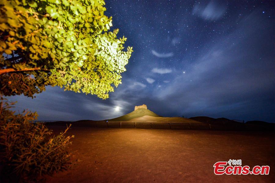 Starry night adds charm to Yangguan Pass in NW China's Gansu (5)