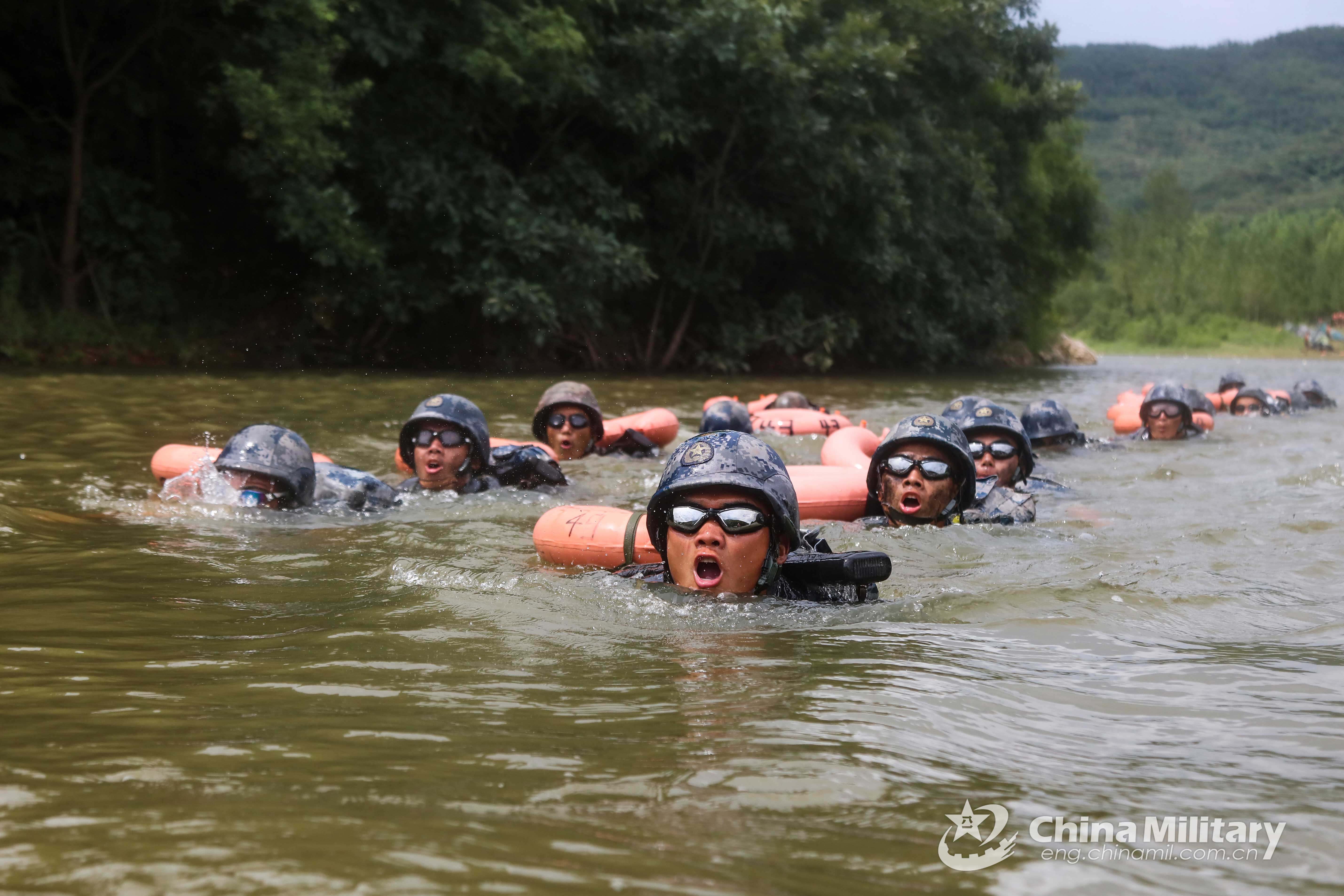 Special operations members assigned to the PLA Air Force swim across the river in full combat gear during the Hell Week extreme military training in late August. Within the week-long training courses, all the 75 participating members were required to complete 25 training subjects, including loaded march and surviving in the wild. (eng.chinamil.com.cn/Photo by Yang Haofeng)