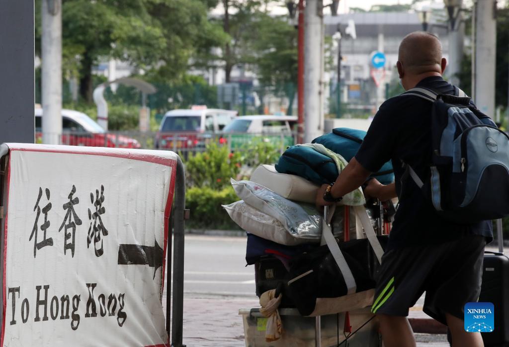 A passenger enters south China's Hong Kong from Shenzhen in south China's Guangdong Province on Sept. 15, 2021. A travel scheme, which allows non-Hong Kong residents from the mainland and the Macao Special Administrative Region to be exempted from the compulsory quarantine upon arrival, took effect on Wednesday. (Xinhua/Li Gang)