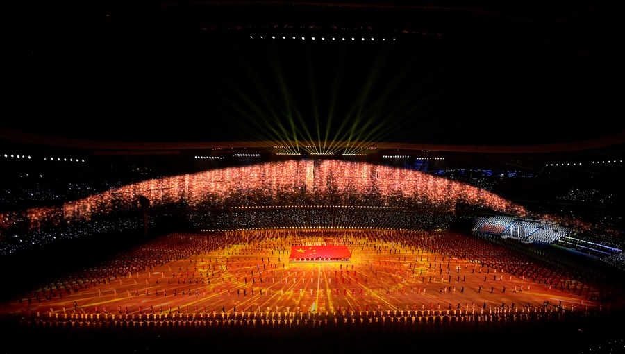 Photo taken on Sept. 15, 2021 shows a scene of the opening ceremony for China's 14th National Games in Xi'an, northwest China's Shaanxi Province. (Xinhua/Tao Liang)