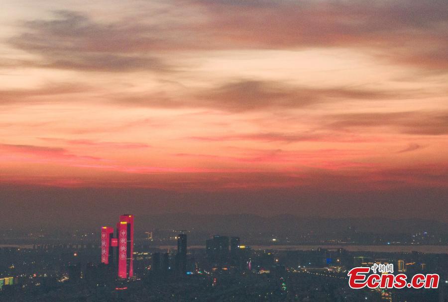 Stunning sunset glow turns the sky into a shade of pink and orange in Nanjing, capital of east China's Jiangsu Province, September 15, 2021. (Photo: China News Service/Yang Bo)
