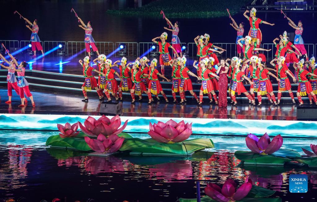 People perform during the opening ceremony of a lantern fair celebrating the Mid-Autumn Festival in Zhouzhuang Township of Kunshan City, east China's Jiangsu Province, Sept. 16, 2021. (Xinhua/Yang Lei)