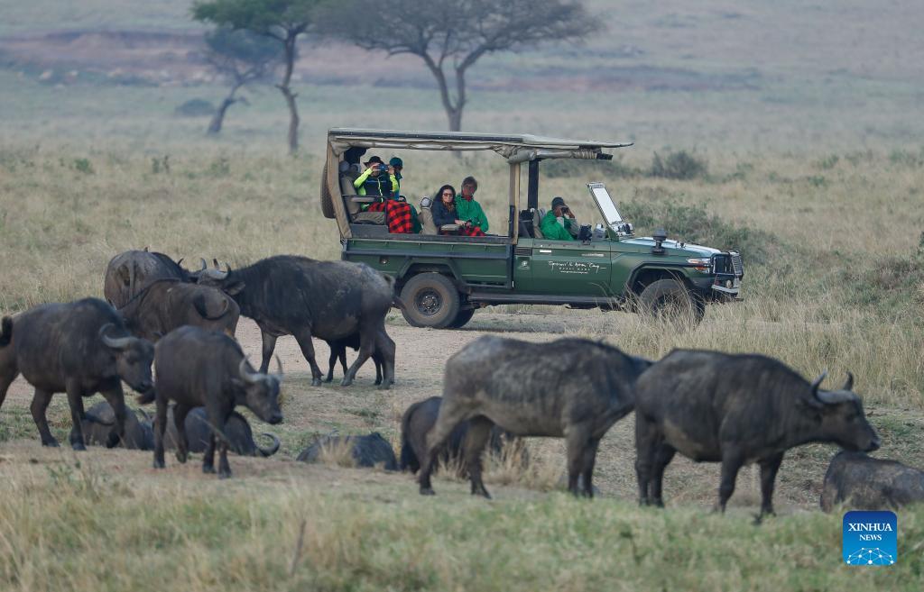 Tourists go sightseeing at the Masai Mara National Reserve, Kenya, Aug. 30, 2021. Kenya is seeking to lure more visitors for the remainder of the year amid the recovery of the global travel sector. For the first six months of 2021, the country received 305,635 foreign travelers, according to Najib Balala, cabinet secretary of Ministry of Tourism and Wildlife. (Xinhua/Long Lei)