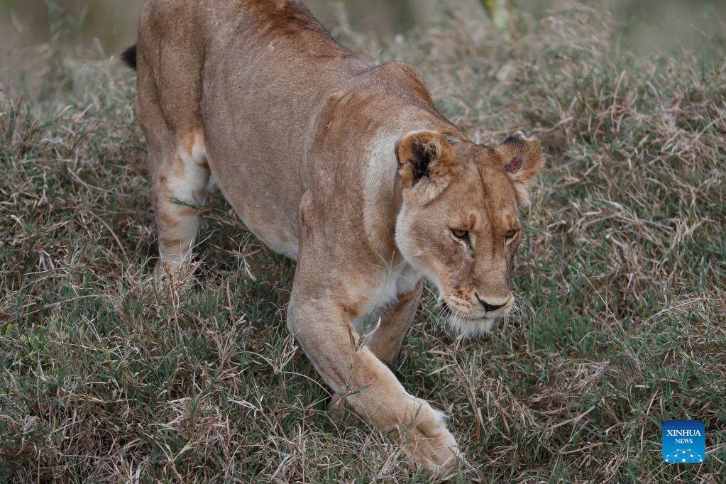 A lion is seen at the Masai Mara National Reserve, Kenya, Aug. 30, 2021. Kenya is seeking to lure more visitors for the remainder of the year amid the recovery of the global travel sector. For the first six months of 2021, the country received 305,635 foreign travelers, according to Najib Balala, cabinet secretary of Ministry of Tourism and Wildlife. (Xinhua/Long Lei)