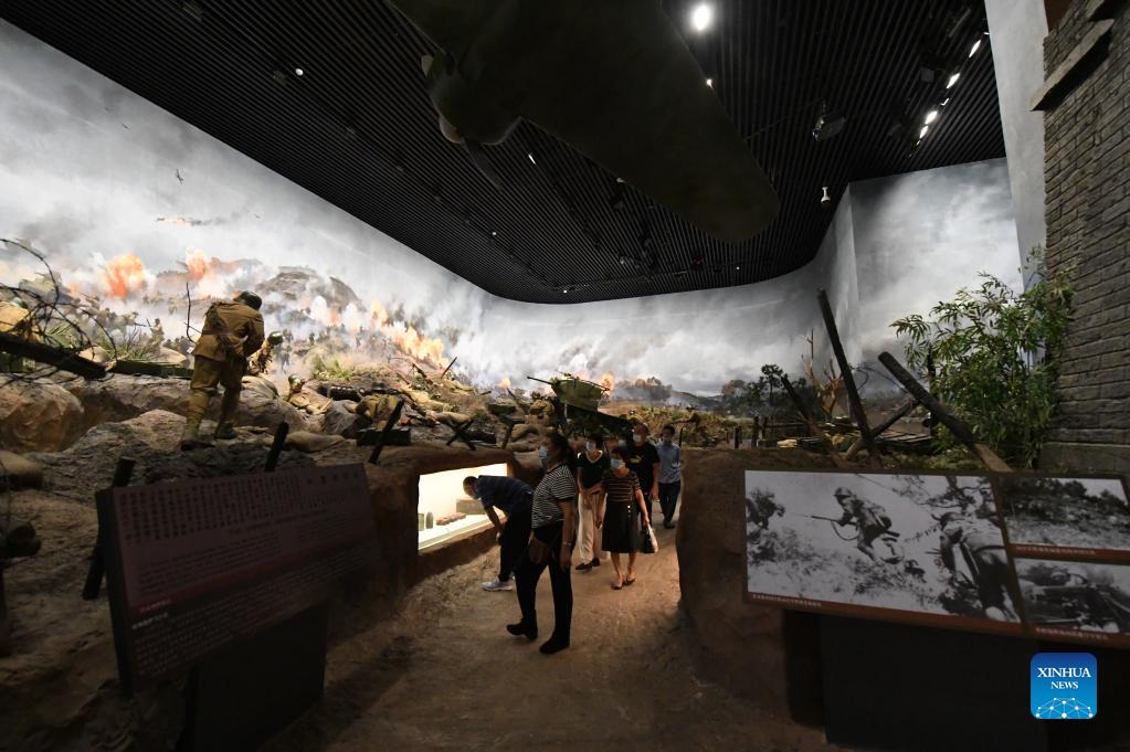People visit the Museum of Kunlunguan Campaign in Nanning, capital of south China's Guangxi Zhuang Autonomous Region, Sept. 16, 2021. Kunlunguan is an important gateway and military stronghold about 50 km from Nanning. Chinese army won the Kunlunguan Victory over the Japanese troops in 1939. (Xinhua/Lu Boan)