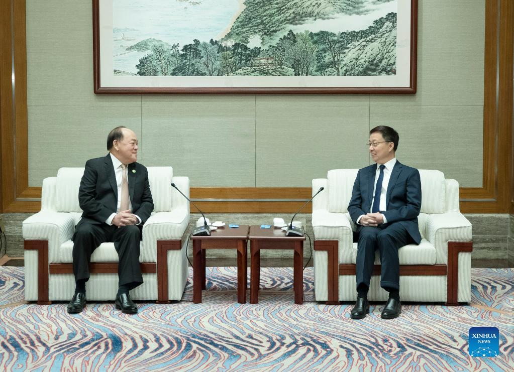 ZHUHAI, Guangdong, Sept. 17 (Xinhua) -- Vice Premier Han Zheng, on Friday morning, met with Chief Executive of the Macao Special Administrative Region (SAR) Ho Iat Seng in Zhuhai, south China's Guangdong Province.