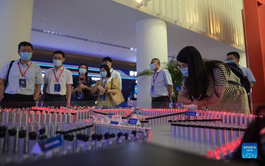 Participants view a quantum computing prototype model during the 2021 Quantum Industry Conference in Hefei, east China's Anhui Province, Sept. 18, 2021. Themed "Quantum Technology · Industry Revolution", the 2021 Quantum Industry Conference was held in Hefei on Saturday. The conference brought together a group of scientific researchers and industry leaders to discuss the development of the quantum industry and released a series of applications. (Xinhua/Du Yu)