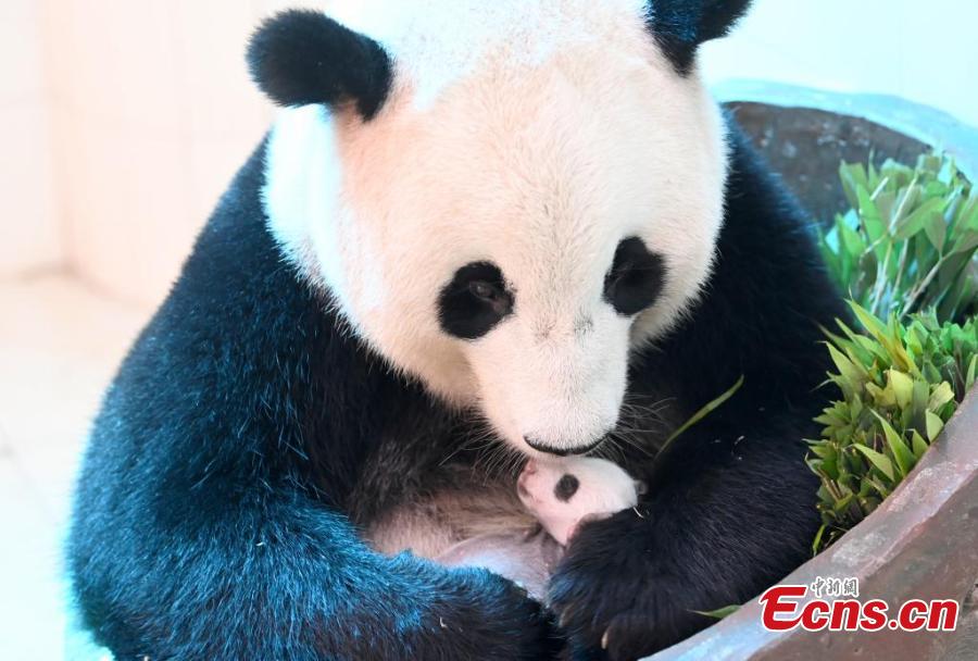 Undated photo shows Giant panda Baobao looks after one of her newborn twin cubs at Shenshuping base of China Conservation and Research Center for the Giant Panda in Wolong National Nature Reserve, southwest China's Sichuan Province. (China News Service/An Yuan)