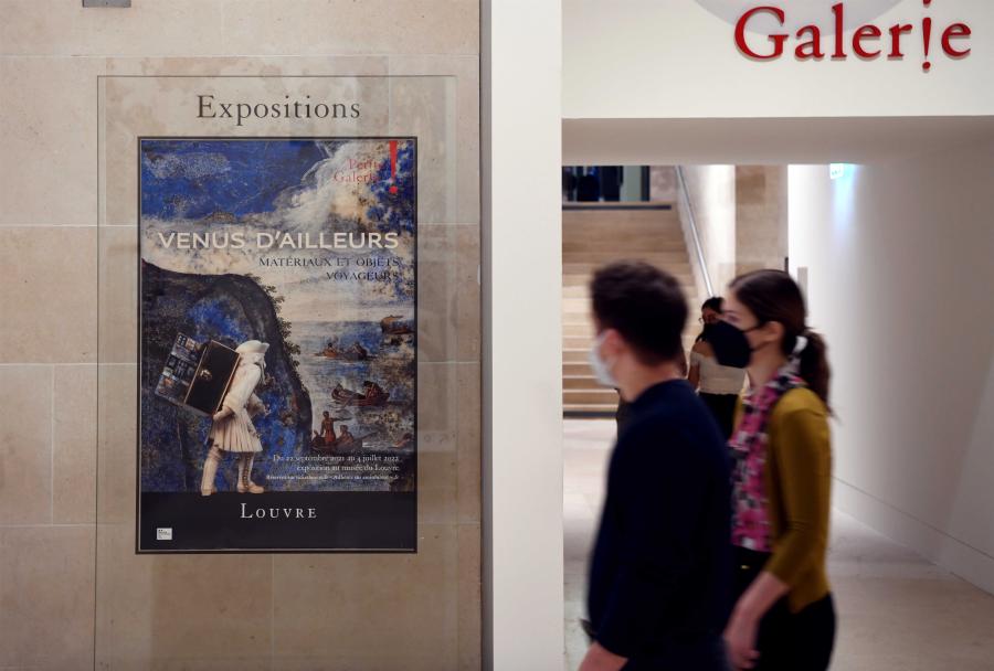 New exhibition From Afar: Travelling Materials and Objects opens in the Louvre in Paris, Sept. 22, 2021, after the museum’s one-year closure on feature exhibitions. (Photo: China News Service/Li Yang)