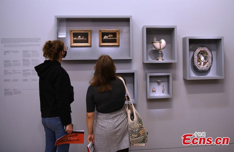 New exhibition From Afar: Travelling Materials and Objects opens in the Louvre in Paris, Sept. 22, 2021, after the museum’s one-year closure on feature exhibitions. (Photo: China News Service/Li Yang) Antiques on display include collections concerning trade and travelling. A special coverage of the ancient silk road can also be seen by visitors.