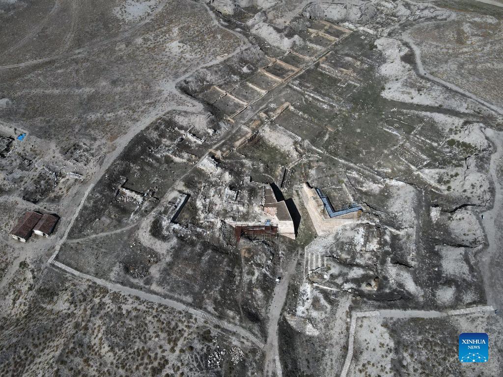Aerial photo taken on Sept. 22, 2021 shows the ancient city of Gordion, located about 70 km southwest of the Turkish capital Ankara. (Photo by Mustafa Kaya/Xinhua)