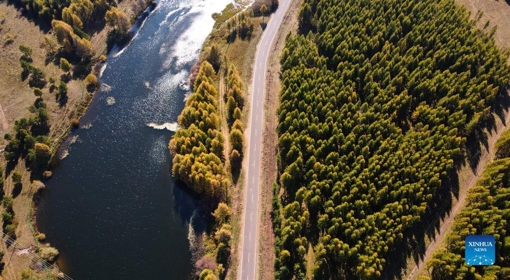 Aerial photo taken on Sept. 23, 2021 shows the autumn scenery of Saihanba forest farm in north China's Hebei Province. (Xinhua/Jin Haoyuan)