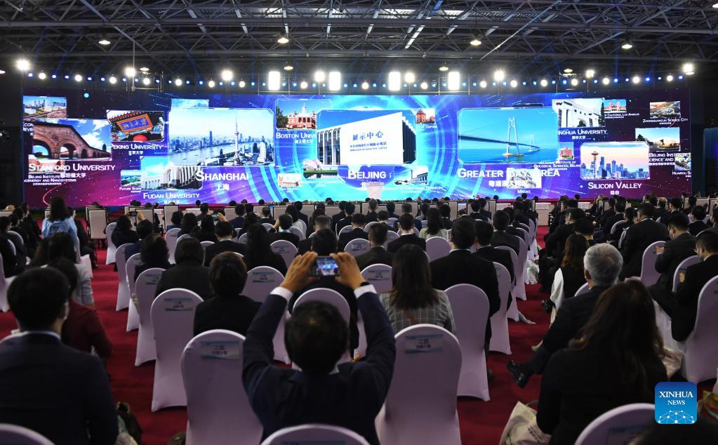 Photo taken on Sept. 24, 2021 shows a scene of the opening ceremony of the 2021 Zhongguancun Forum in Beijing, capital of China. The 2021 Zhongguancun Forum, which opened here on Friday under the theme of "intelligence, health, and carbon neutrality," is scheduled from Sept. 24 to 28. (Xinhua/Ren Chao)