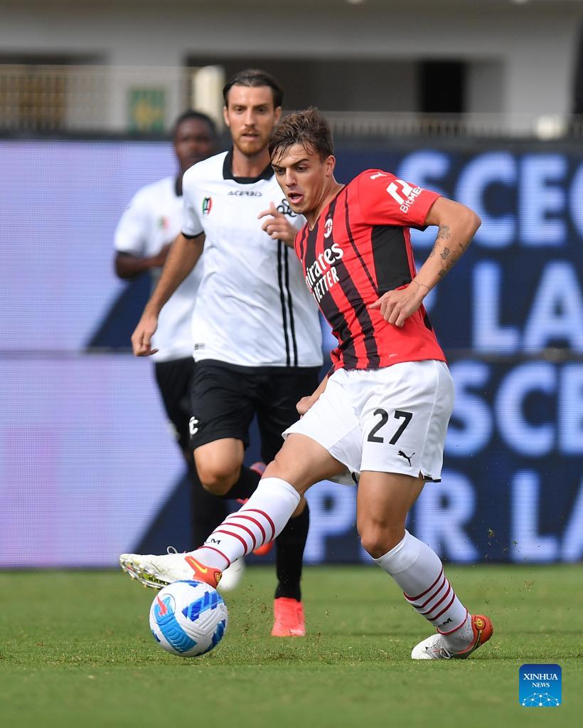 ROME, Sept. 25 (Xinhua) -- Daniel Maldini made most of his rare start for AC Milan as his maiden goal helped his side edge Spezia 2-1 away on Saturday.