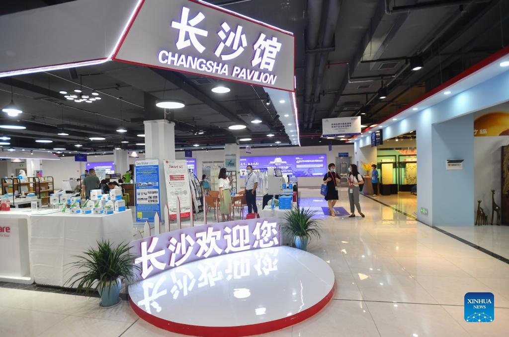 Visitors are seen during the second China-Africa Economic and Trade Expo held in Changsha, central China's Hunan Province, Sept. 26, 2021. The four-day event, online and offline, themed "New Start, New Opportunities, and New Accomplishments," has attracted nearly 900 enterprises from nearly 40 African countries and China, according to the organizers. (Xinhua/Chen Zeguo)